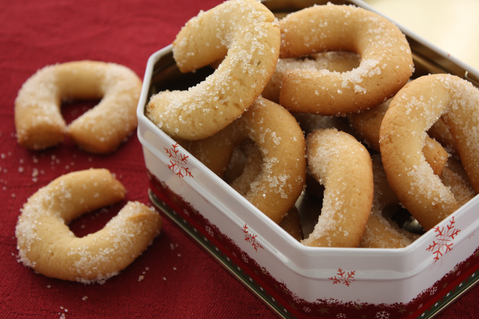 Odvajajte manje dijelove tijesta i valjajte ih u valjak dok ne dobijete željenu debljinu (oko 1 cm). Tada ih izrežite na trake (8-9 cm) i oblikujte ih u oblik potkove. Poslažite ih u namašćeni lim za pečenje kojeg ste prekrili papirom za pečenje i pecite 15 minuta u pećnici zagrijanoj na temperaturi od 180° C.